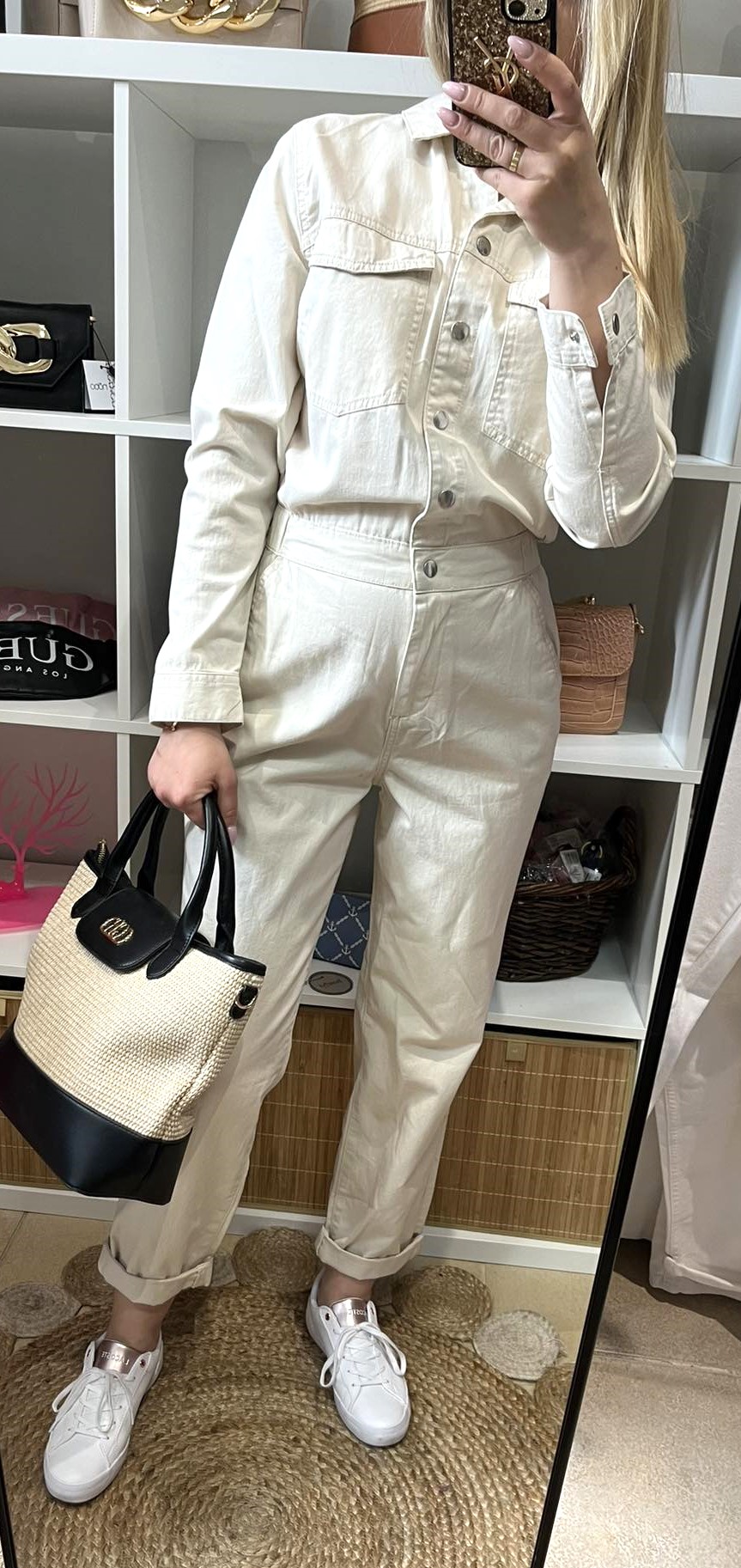 Miękki jeans sprawia, że kombinezon jest bardzo wygodny i przewiewny. Zapinany na zatrzaski. Posiada kieszenie z tyłu i przodu