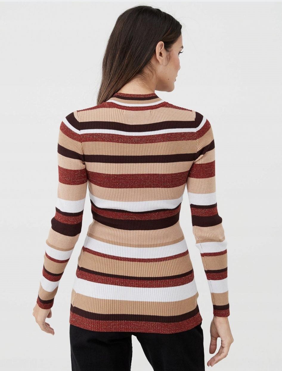 Prążkowany sweter w paski ze złotą nitką