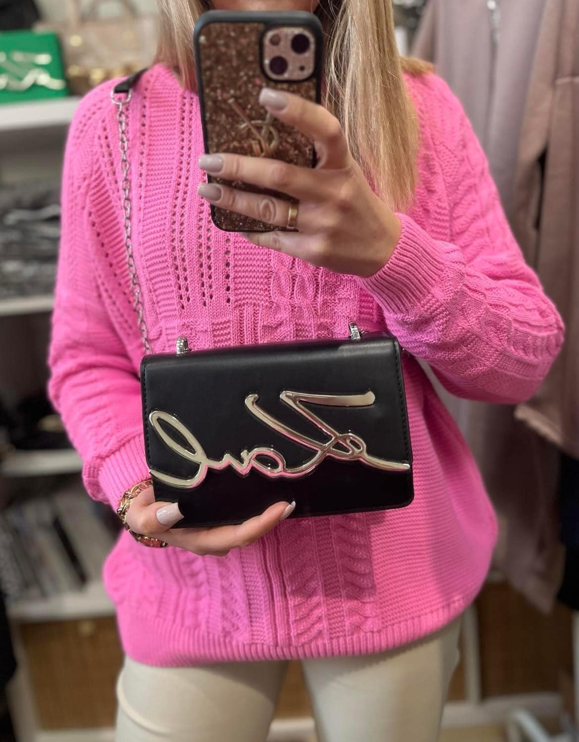 Torebka na srebrnym łańcuszku ze srebrnym napisem Karl.